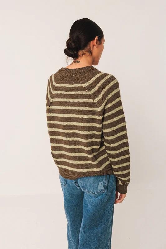 Un jersey de punto con raya marinera es un básico en tu fondo de armario. Detalle bidireccional en el talle y fit relajado.