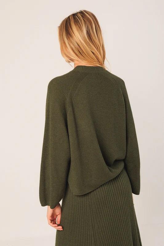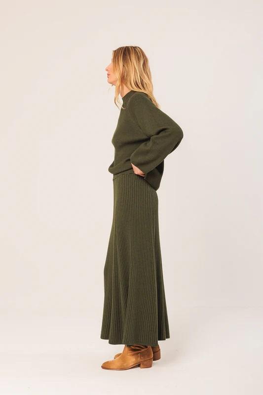 Jersey boxy de canalé con cuello perkins y aberturas laterales. La manga es ranglan y ligeremante amplia. Combínalo con cualquier prenda de tu armario, o con la falda que tiene a juego.