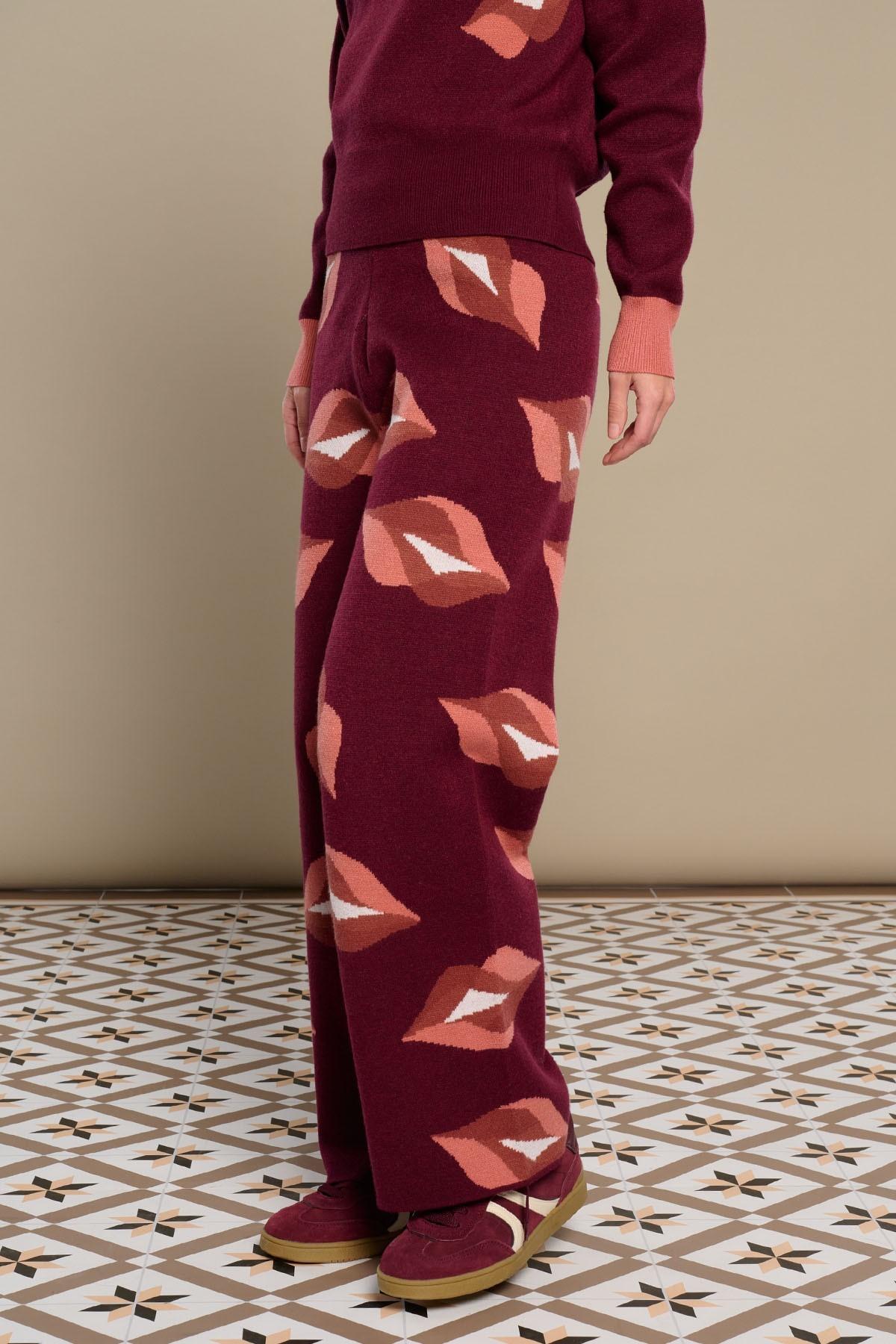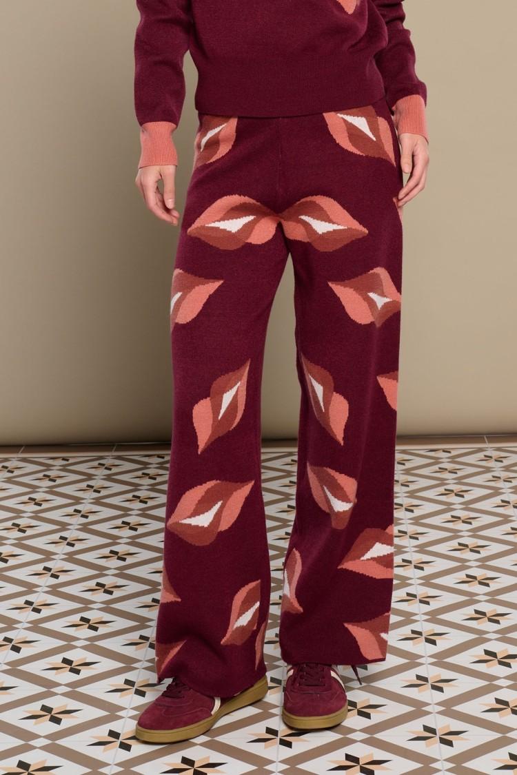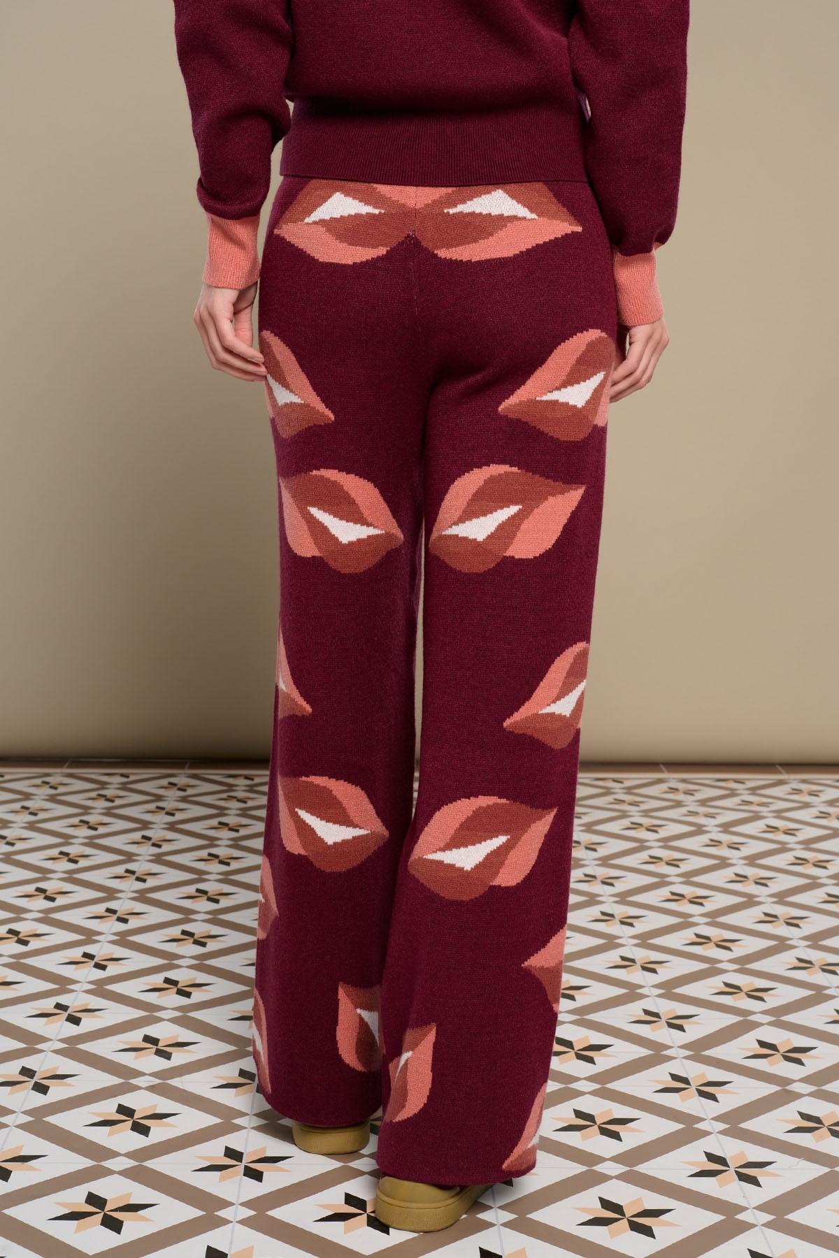 Pantalones de punto elástico. Wide leg. Estampado labios.
