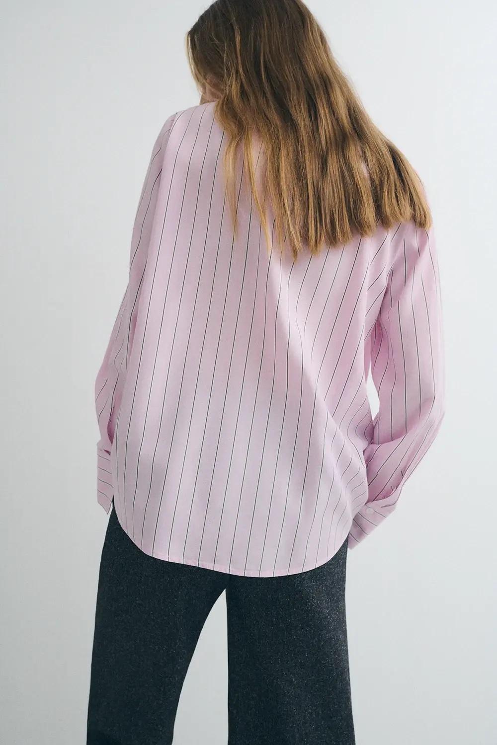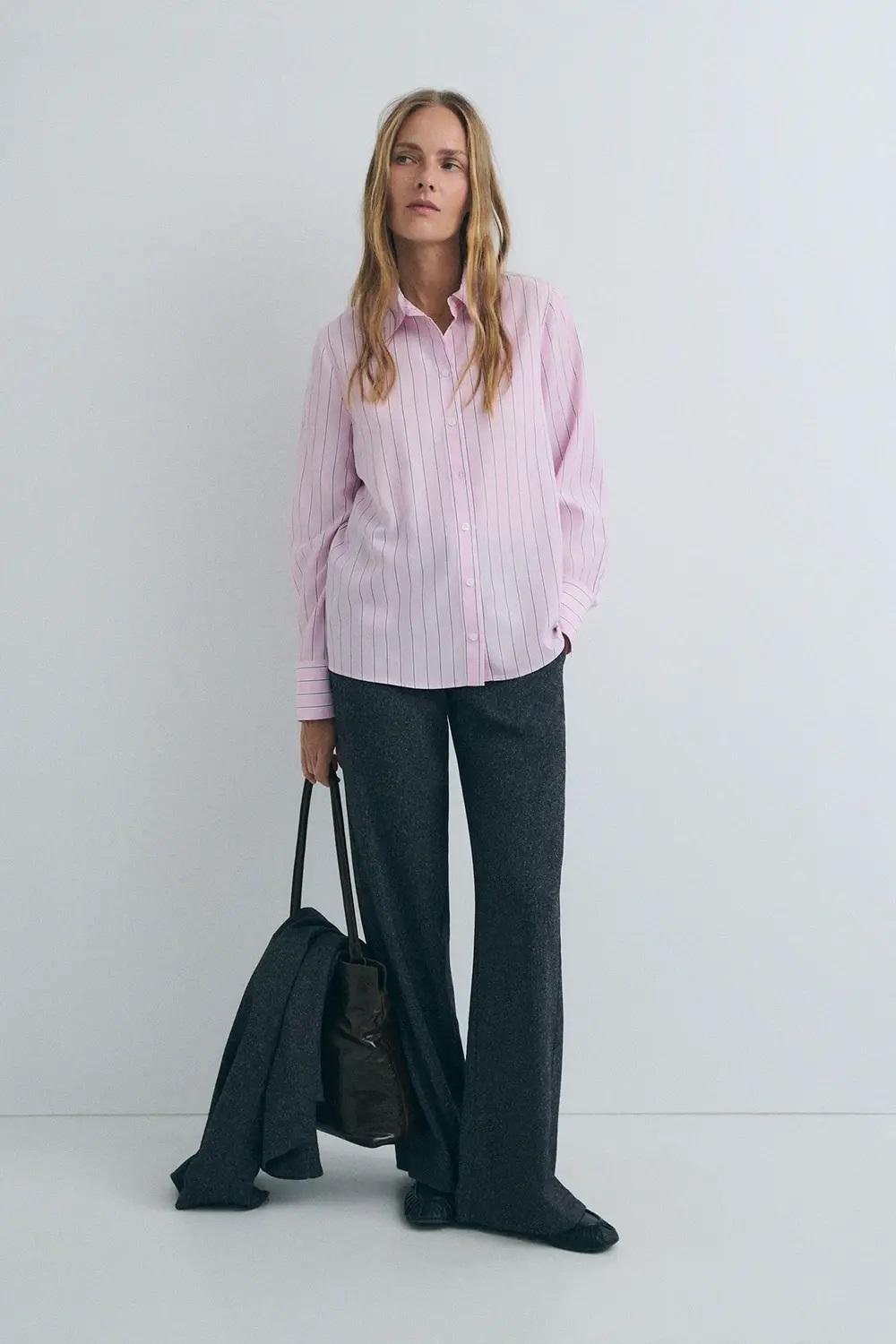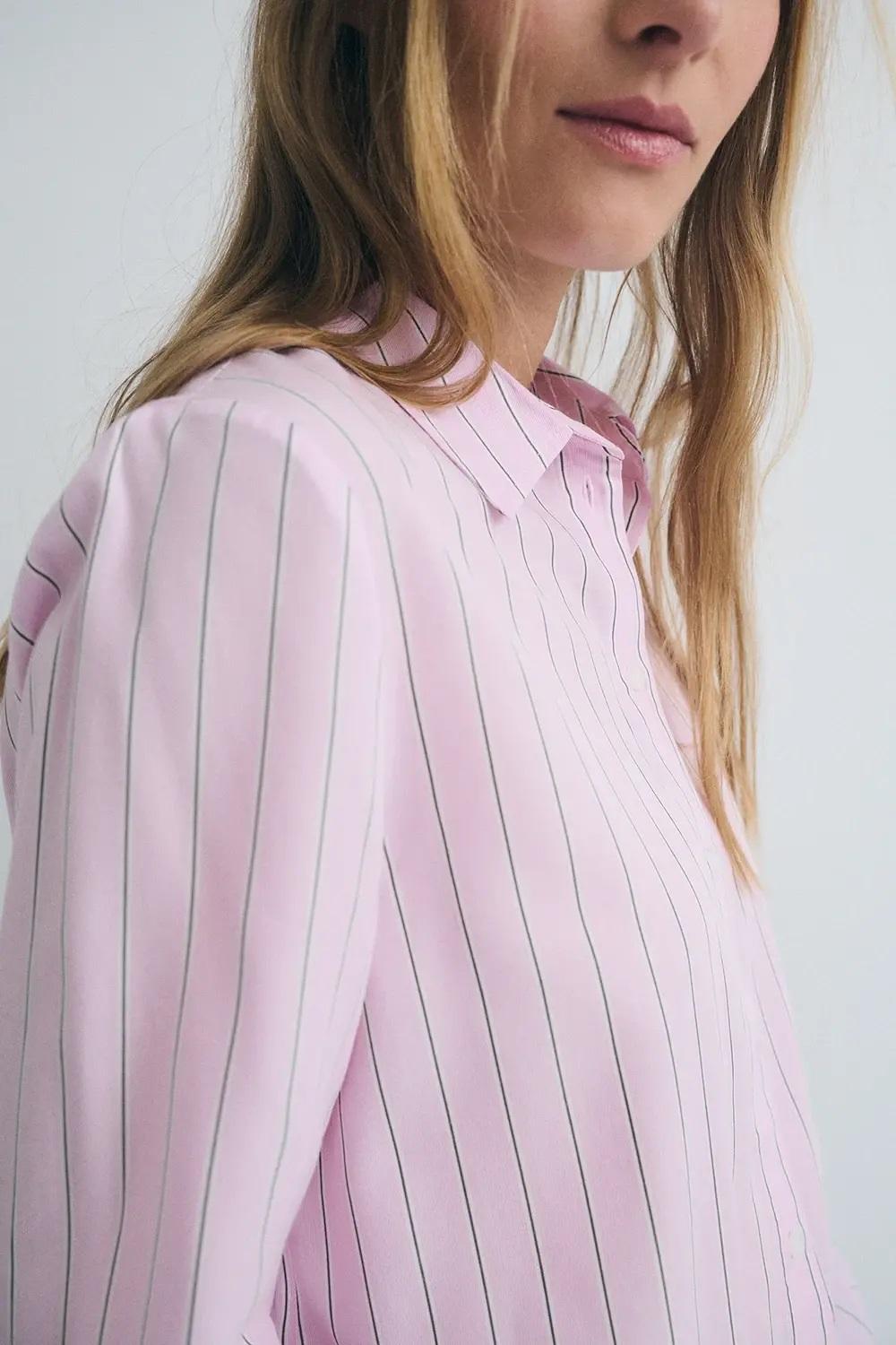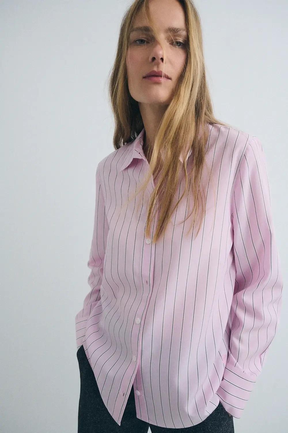 Camisa básica de rayas en tencel. Detalle logo bordado en el lateral. Cuello camisero. Manga larga con puños abotonados. Cierre central con botones. Fitting recto ligeramente holgado