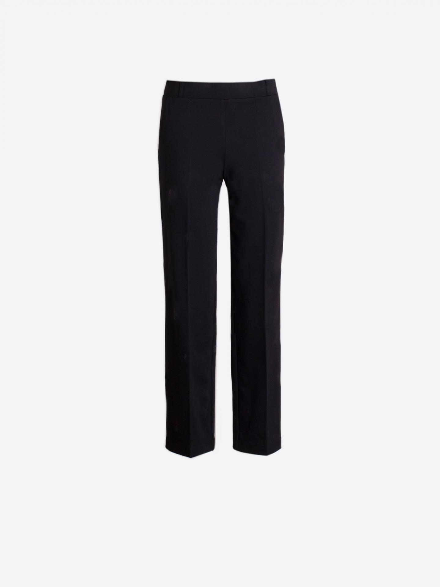 Pantalón negro de punto elástico con tiro medio y corte recto. Sin bolsillos. Teijdo flexible, suave y con estructura, que se adapta sin perder la forma.