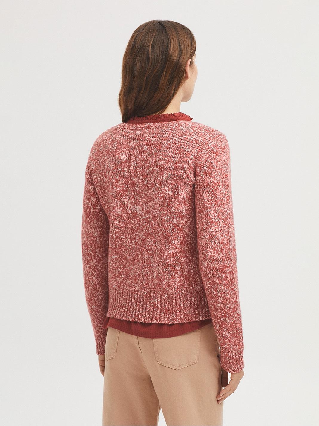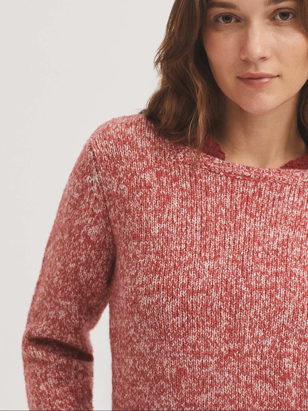 Jersey en mezcla de lana y algodón sostenible de hilo torzal. Detalle de cuello cuadrado, manga larga y acabados en rib.