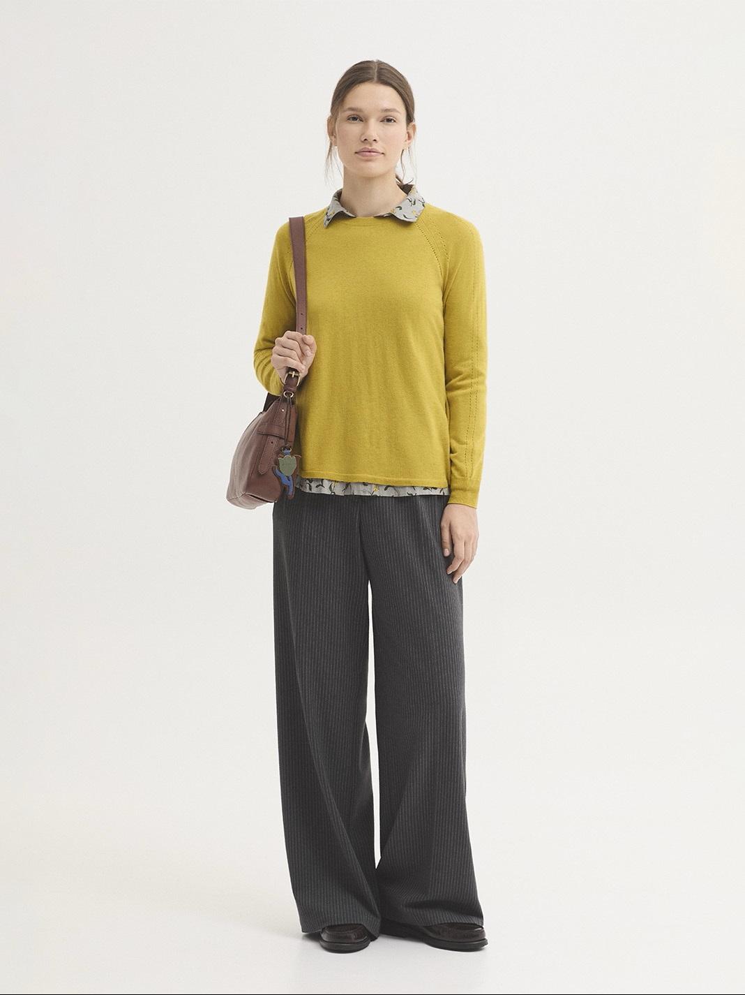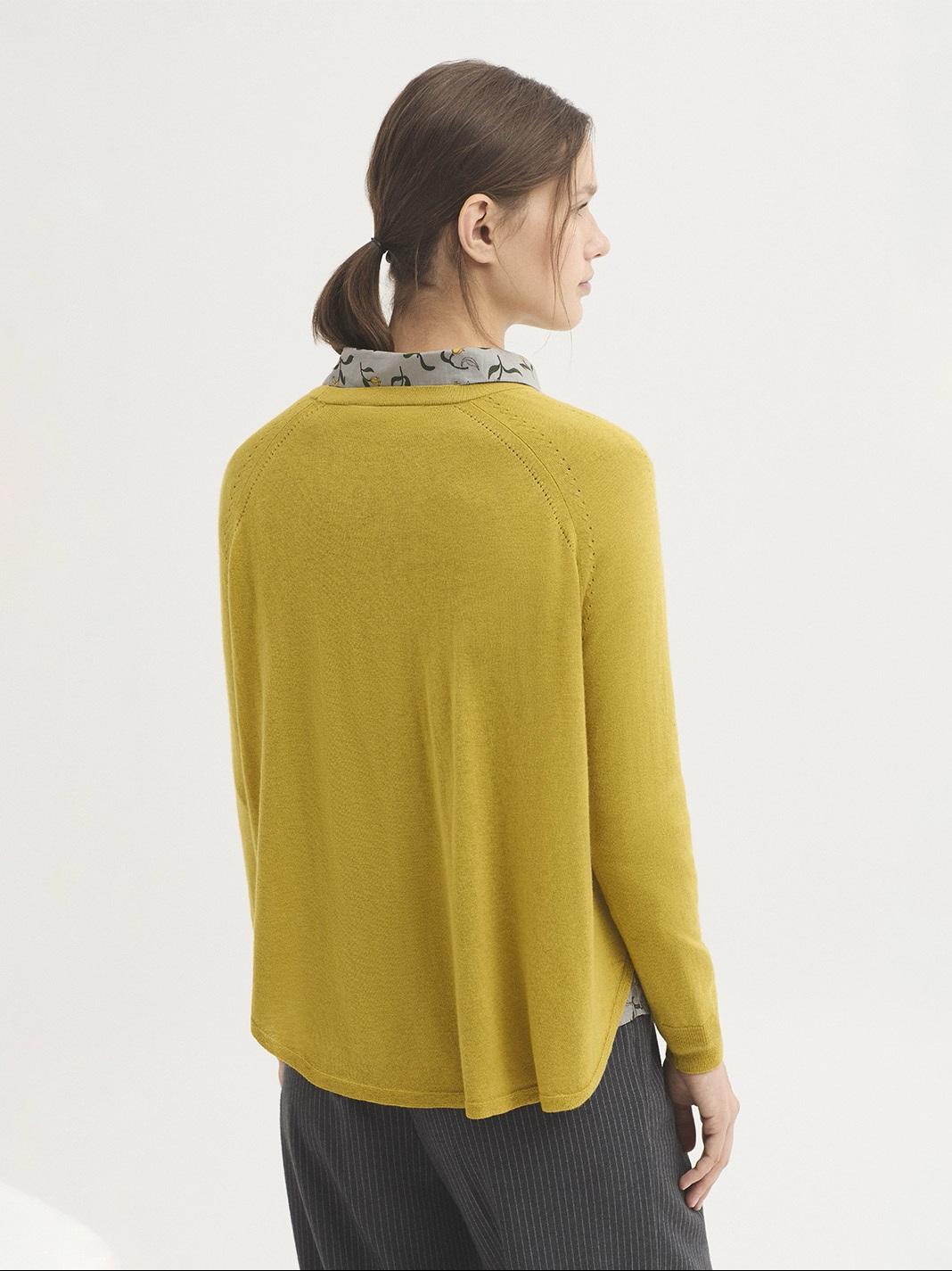 Jersey básico oversize tipo capa en mezcla de lana merino-cachemira. Cuello redondo, manga raglán y acabado en rib.