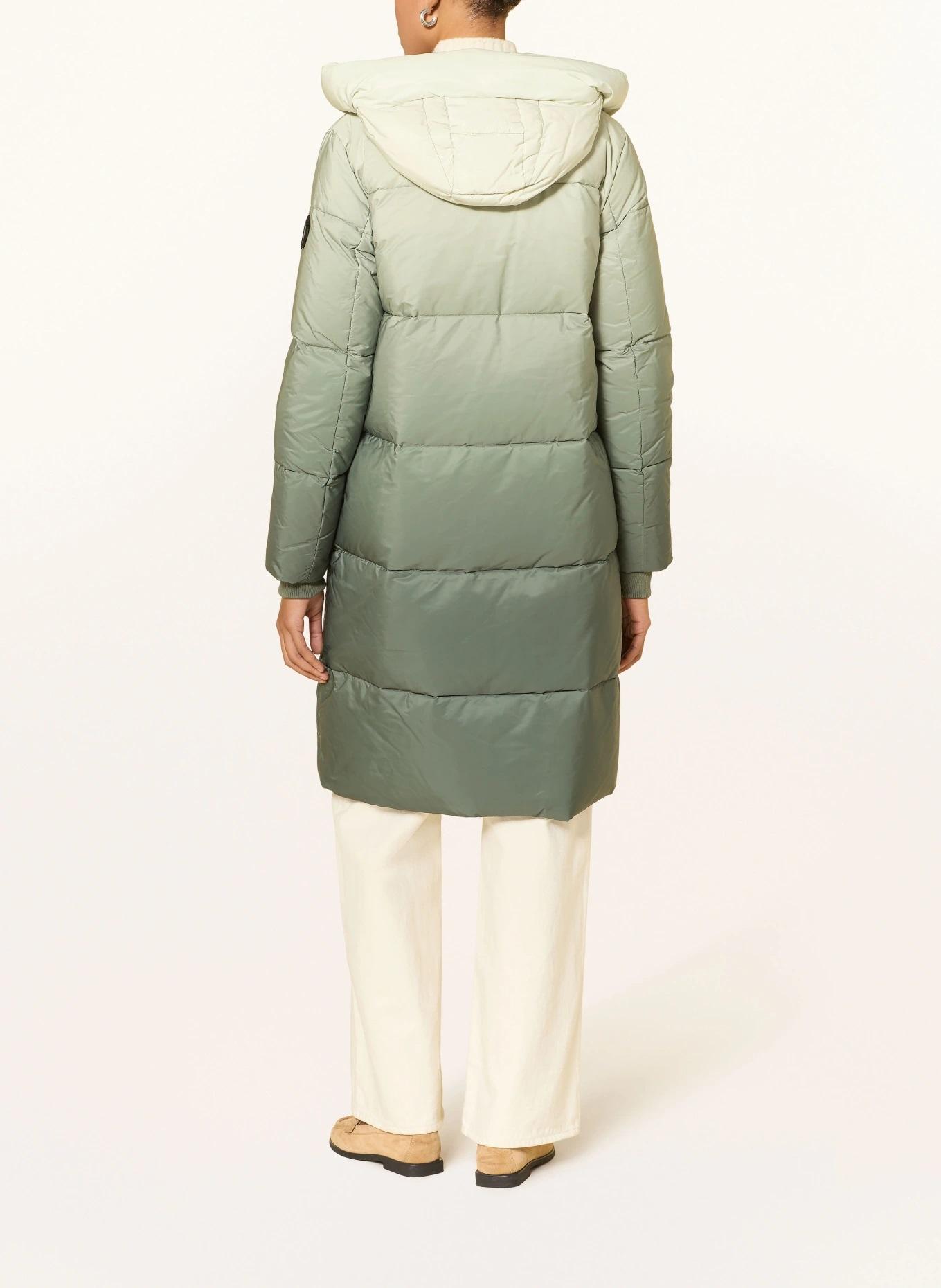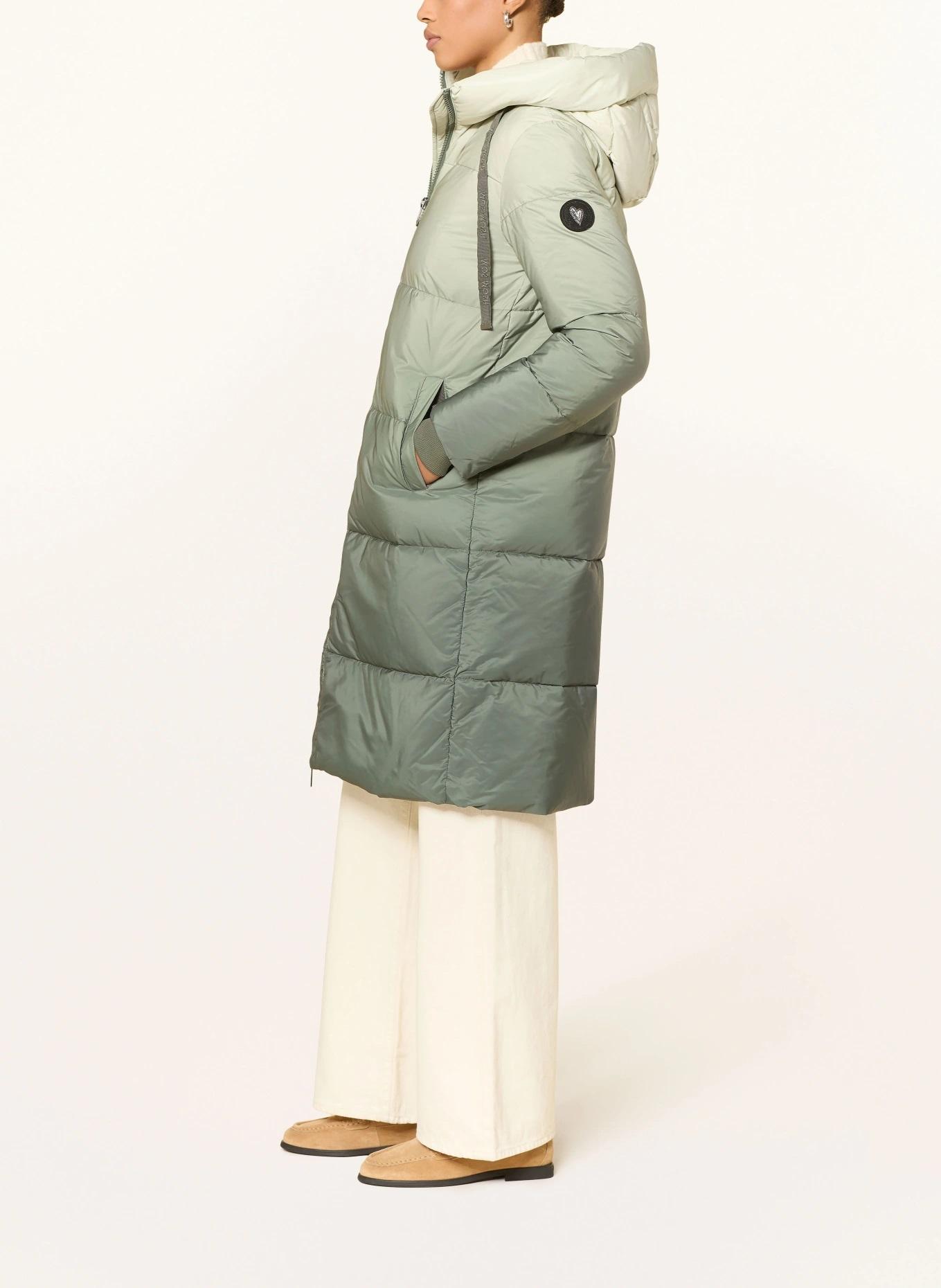 ¡Este abrigo de plumas tiene un estilo increíble! Está diseñado con un efecto degradado y tiene un corte largo, confeccionado en plumón superligero. Cuenta con un cuello alto y práctico, una cremallera resistente, bolsillos y cordones gruesos.