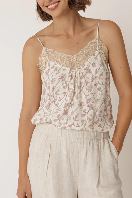 Un top lencero con encanto propio. Su tejido ligero y el encaje delicado lo convierten en ese básico especial que transforma cualquier look.