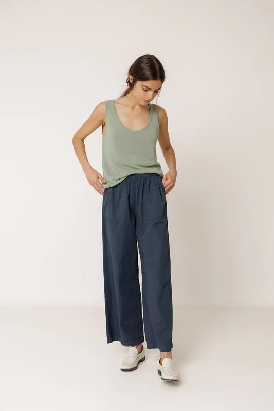 Este top fluído con lino, lo puedes combinar con la chaqueta de la misma serie o con cualquiera de las prendas de tu armario. Además está tintado en prenda.