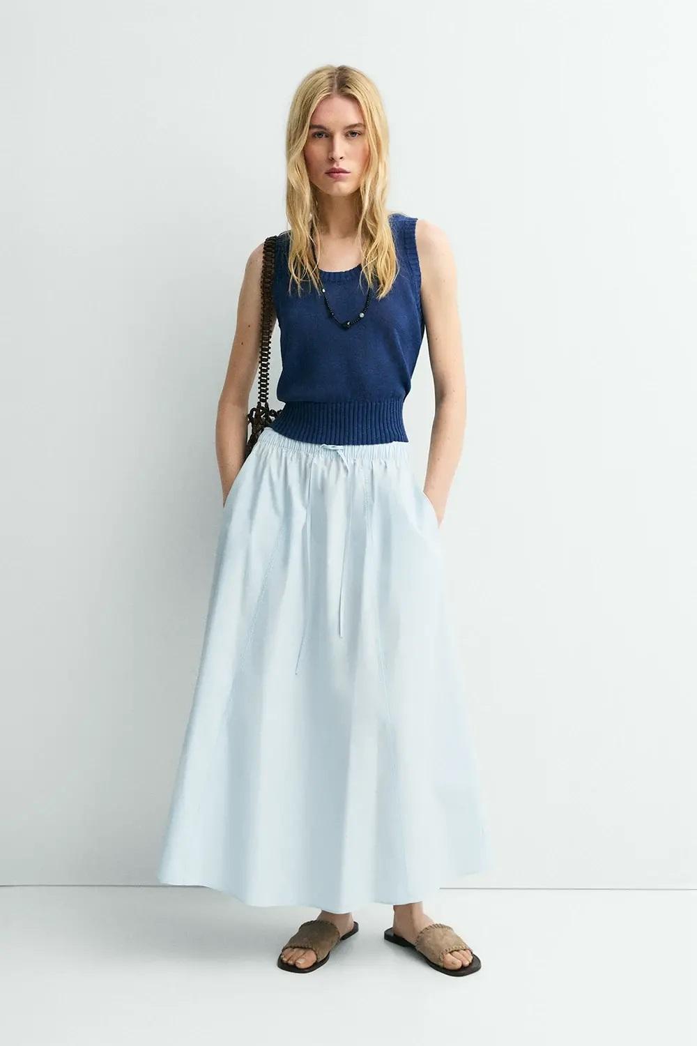 La falda Bubble se convierte en una pieza versátil y femenina, ideal para combinar con tops y blusas.