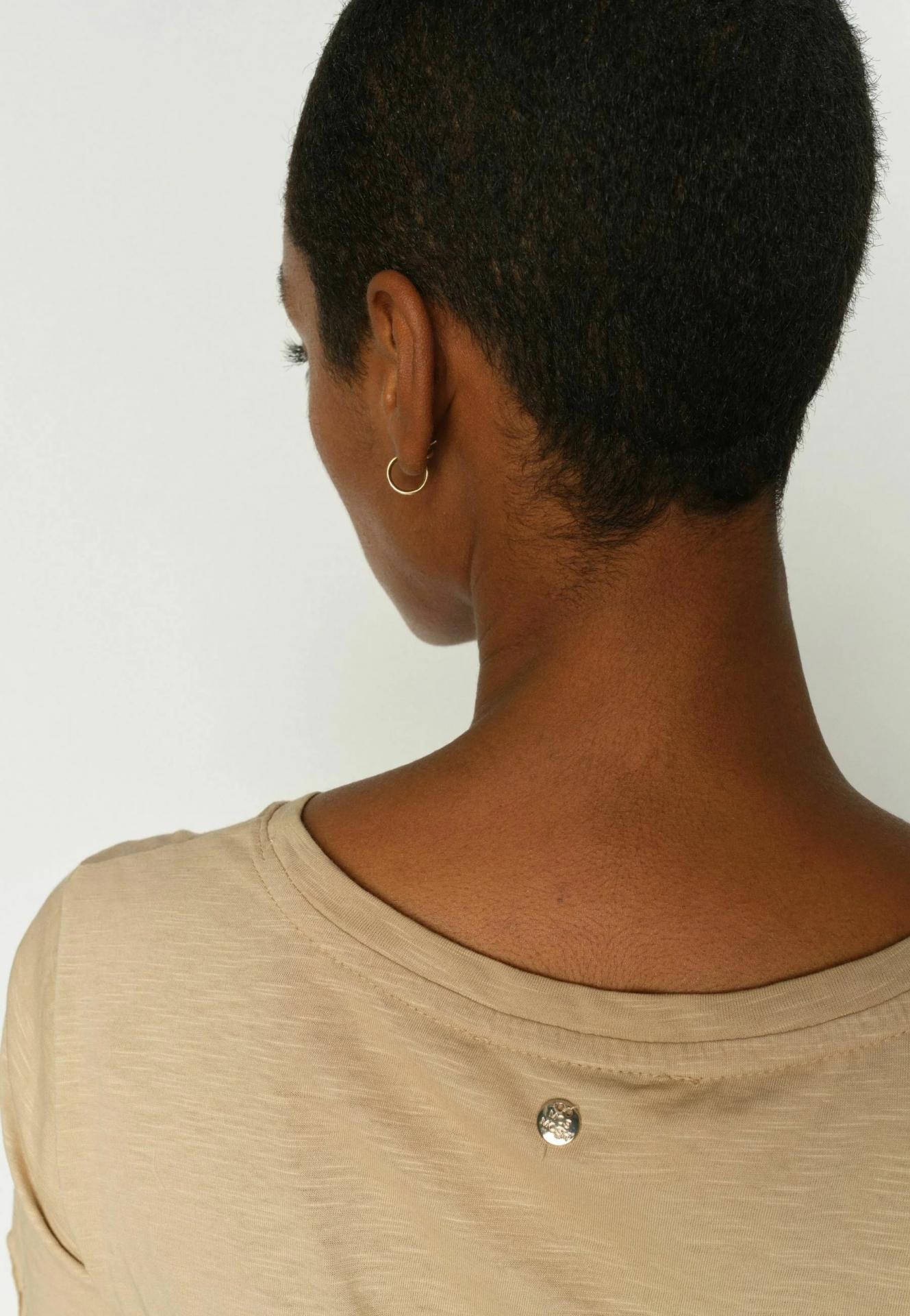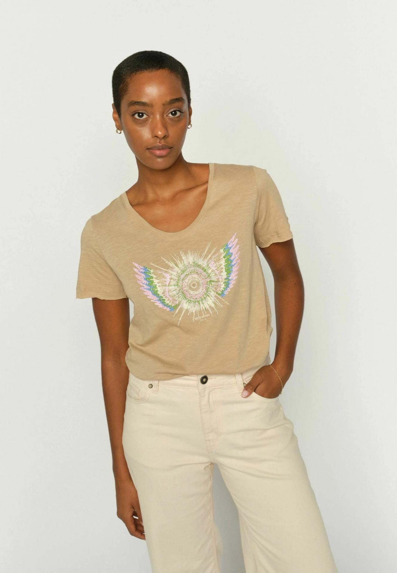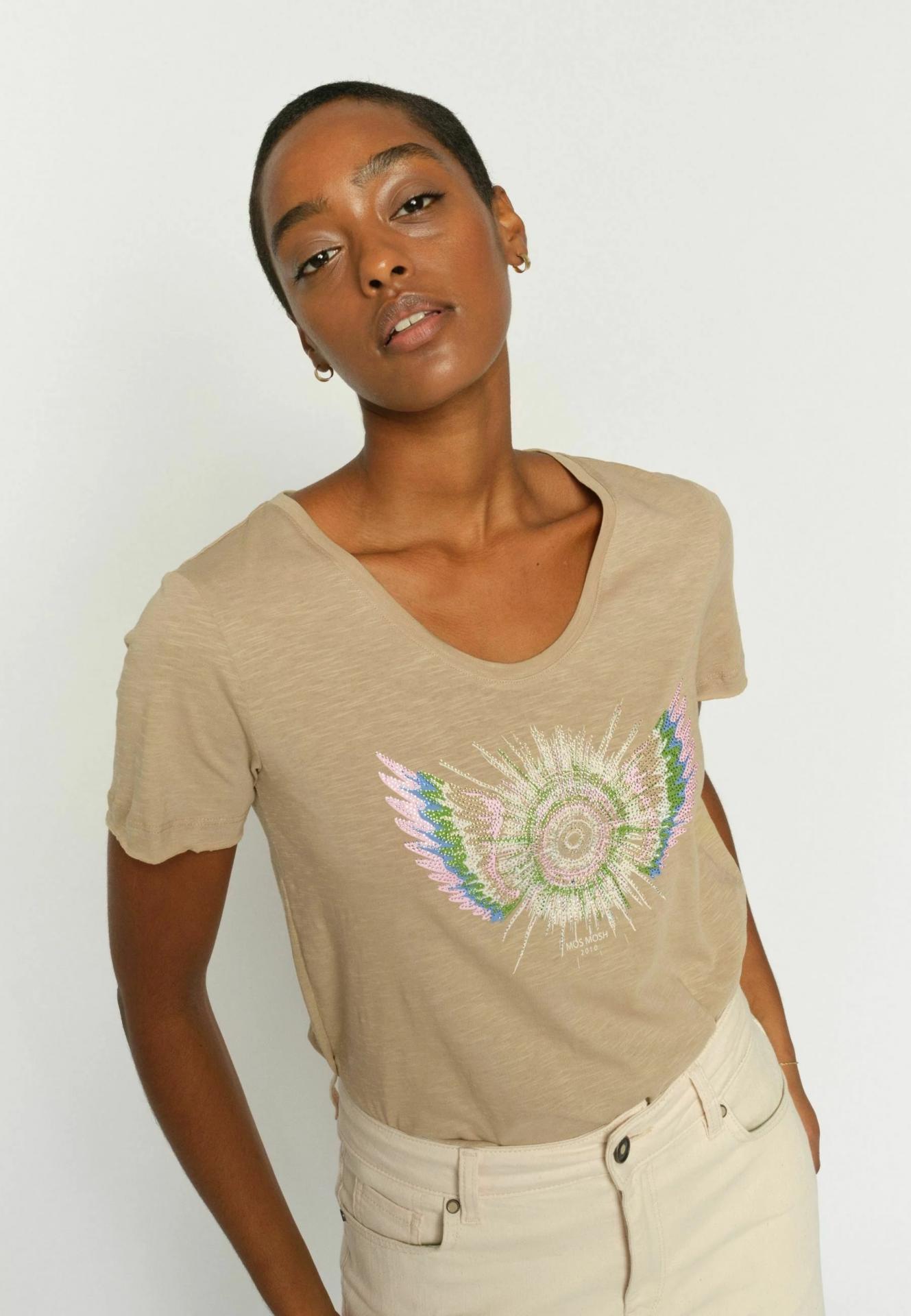 Una camiseta clásica con un toque glamuroso. Confeccionada en suave algodón y con un favorecedor corte entallado. El estampado frontal, con detalles llamativos, aporta un toque de brillo a tu look diario. Combínala con vaqueros o un blazer para una elegancia natural con un toque de personalidad.